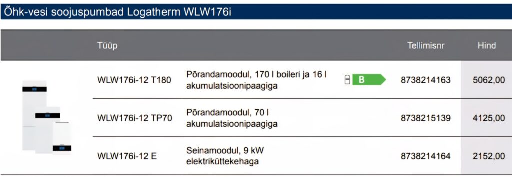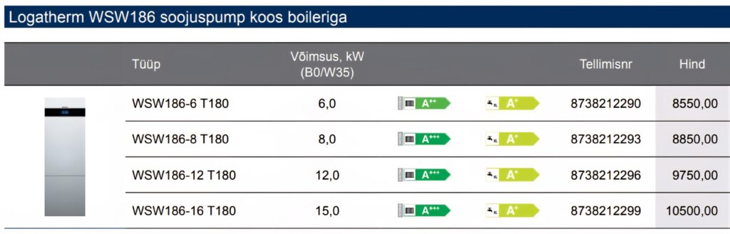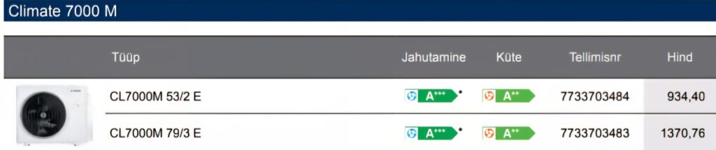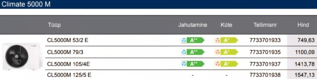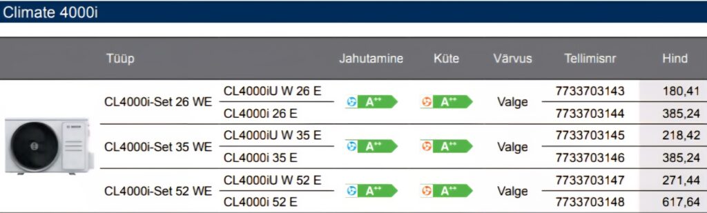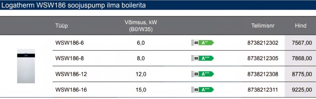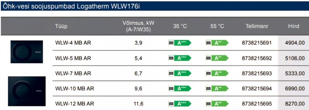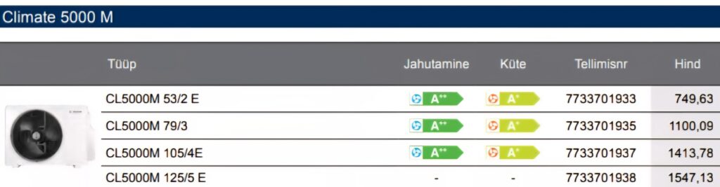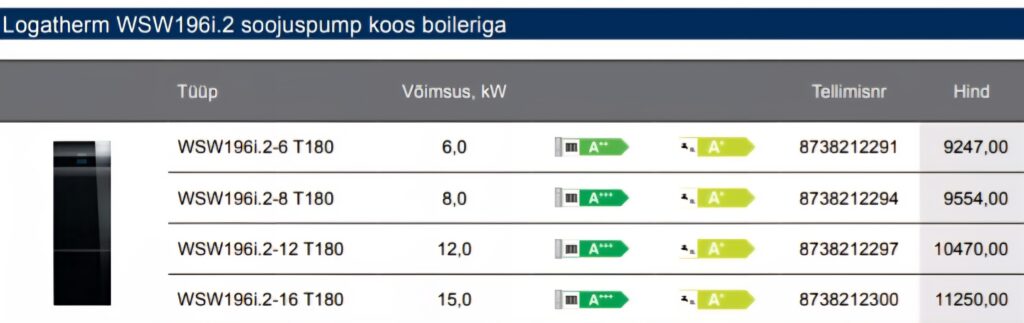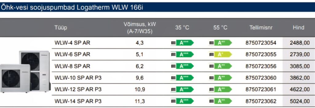 Õhk-vesi soojuspumpade näidispakkumised, ilma soojaveeboilerita: