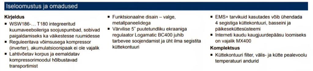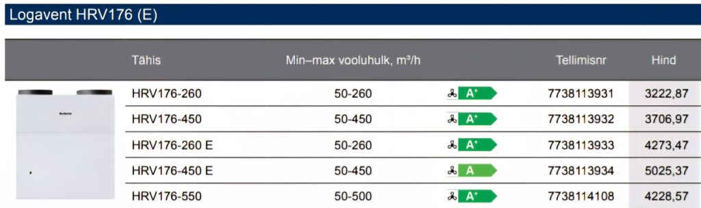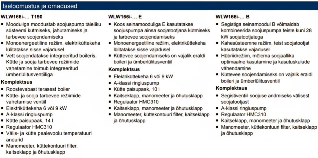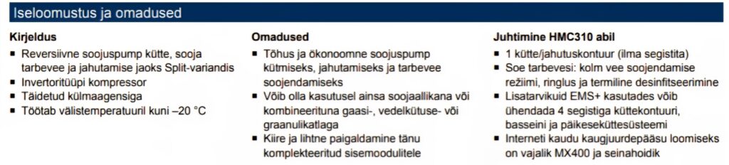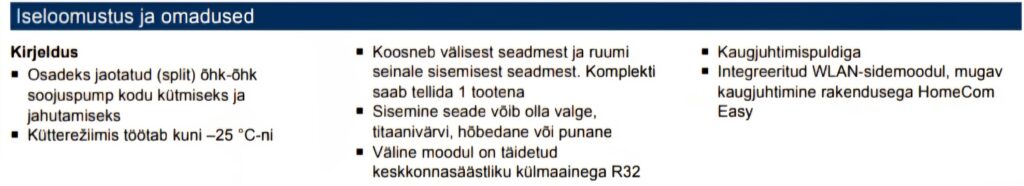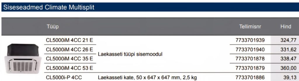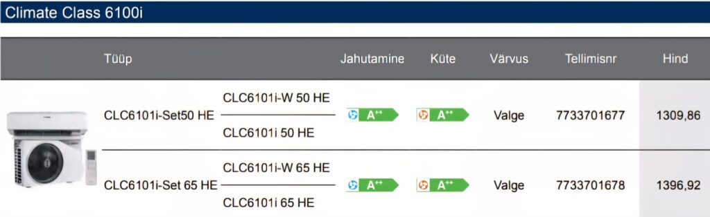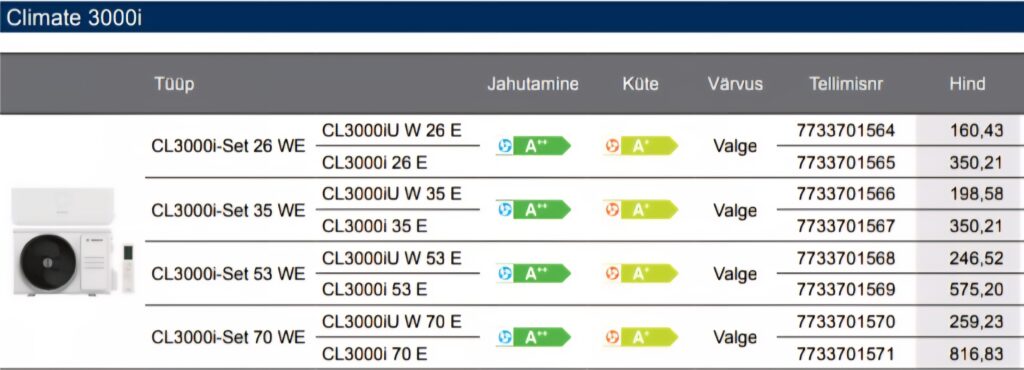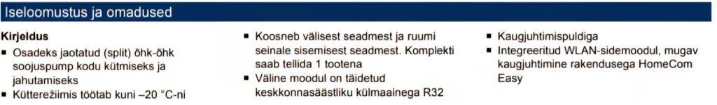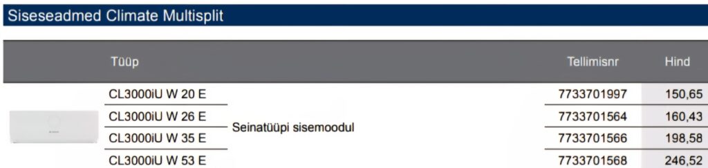 Õhk-vesi soojuspumpade näidispakkumised, ilma soojaveeboilerita:
