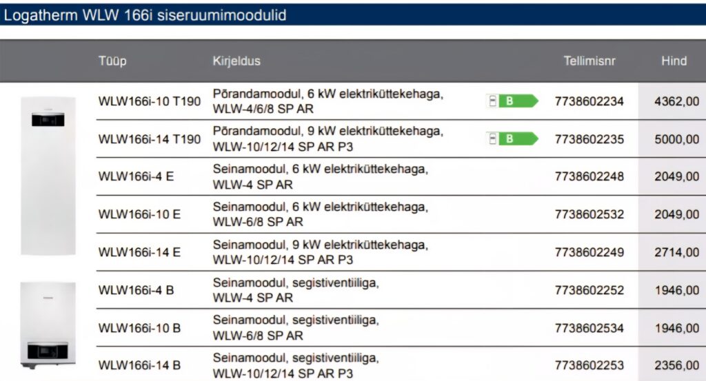Logatherm WLW-10 SP AR P3 soojuspump 9kW Logatherm WLW166i-14 E seinamoodul 4999€